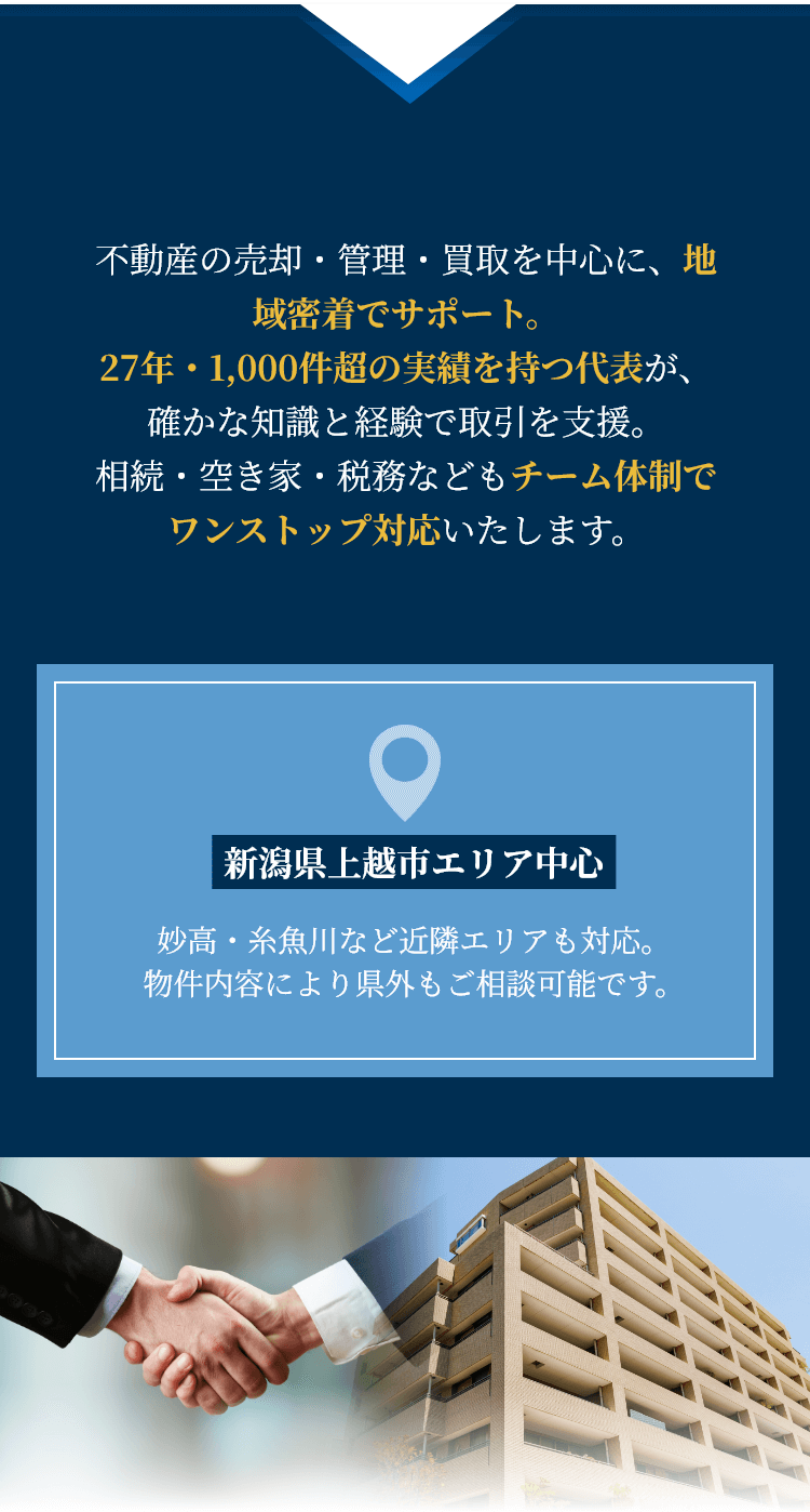 27年・1,000件超の実績を持つ代表が、確かな知識と経験で取引を支援。